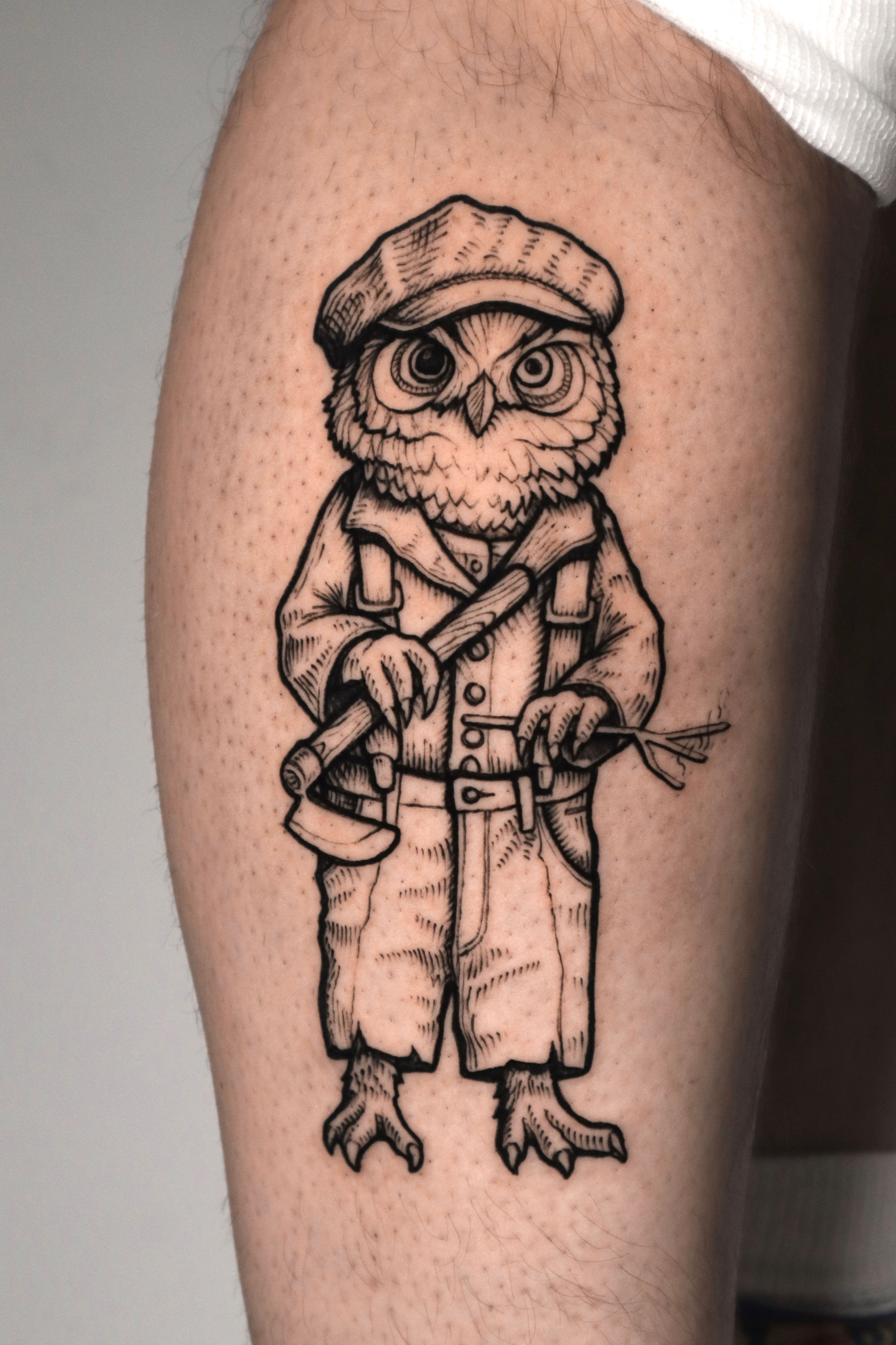 @gniewna_dziaraPrace Gniewka poznasz po wyraźnym konturze i subtelnym gradiencie. Dziara głównie ryciny. Podczas tatuowania nie zabraknie Wam tematów do rozmów. Spędza dużo czasu na świeżym powietrzu (deska, fingerboard, rower, rolki) i gra na instrumentach wszelkiej maści, a poza tym majsterkuje, szyje na maszynie, kaligrafuje. Dostrzega piękno w codzienności. Oryginalnie człowiek z gór, ale ceni też sobie powiew morskiej bryzy. Ma wrażenie, że w poprzednim życiu był piratem. Jest przekonany, że koty powinny przejąć władzę nad światem.